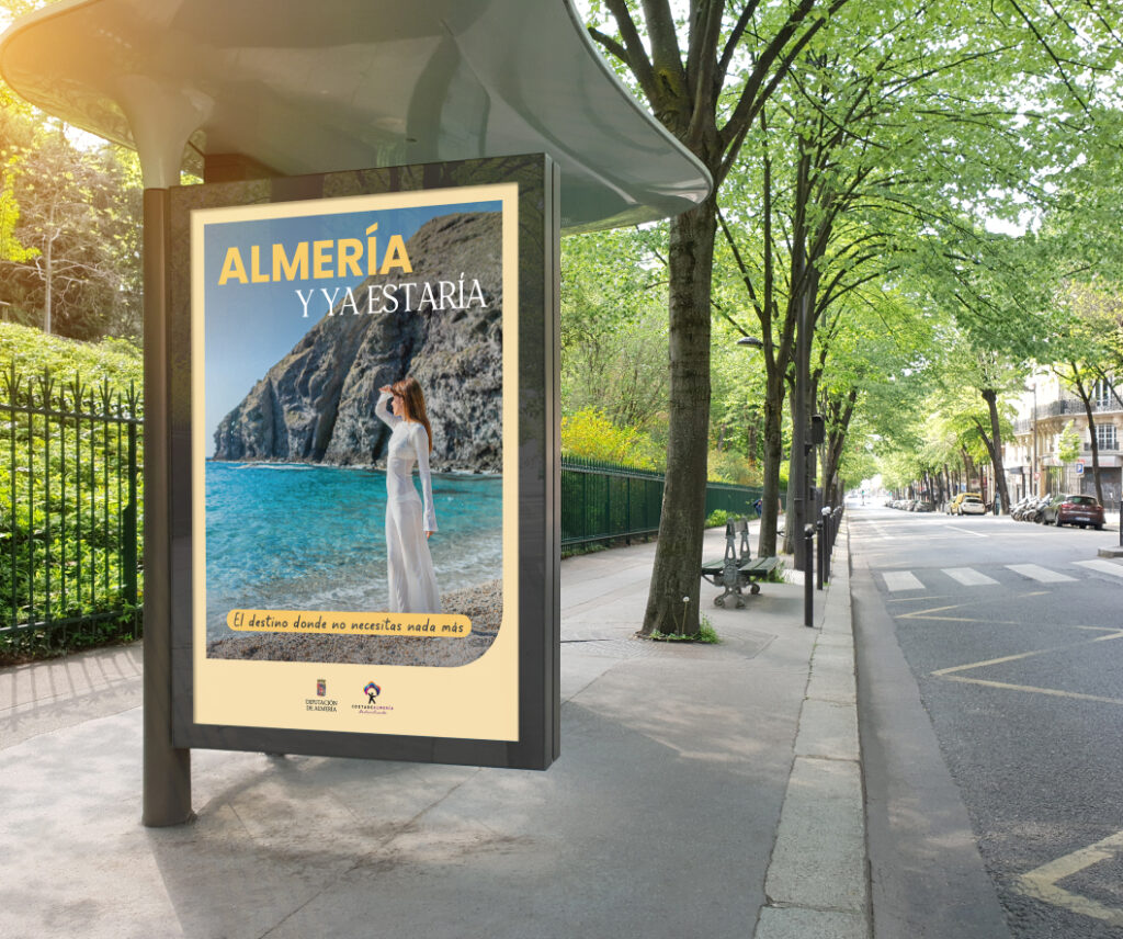 Desarrollo completo de la Campaña de Promoción Turística 2026 de la provincia de Almería, desde la conceptualización, guion y estrategia creativa, pasando por la producción y rodaje de spot junto a Imagen Visual Art, hasta la creación de mupis, cuñas de radio, web y difusión.